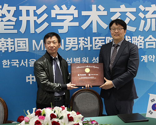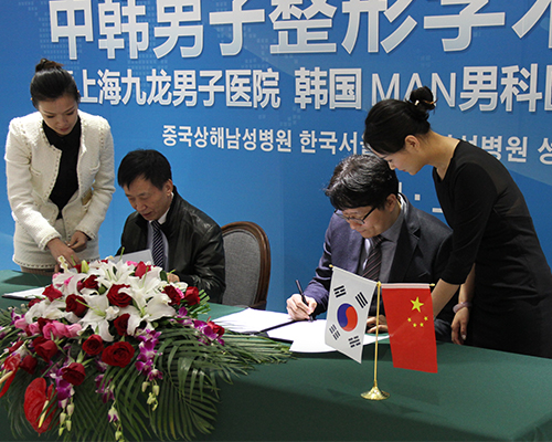 3月25日韩国的MAN男科医院金道理院长与上海九龙男子医院泌尿科勃起障碍手术权威医师围绕男性生殖整形展开学术交流。